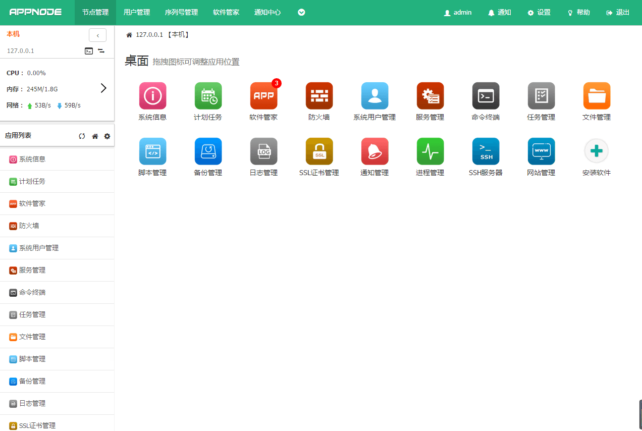 AppNode是一款Linux服务器LNMP建站面板,拥有非常强大的服务器管理功能,出来满足基本建站需求和服务器管理之外,此面板支持多台服务器统一管理,支持把一台作为服务端,另外几台作为受控端,统一管理。此面板原来有收费功能,在2017.11.1日成立三周年之际宣布了现有功能全部免费,并且是永久免费。此面板可以说比宝塔Linux面板功能更为强大,有需要的朋友可以研究试试。