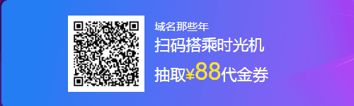 1、扫码搭乘时光机,抽取¥88域名代金券,站长抽了个5元(╥╯^╰╥)。