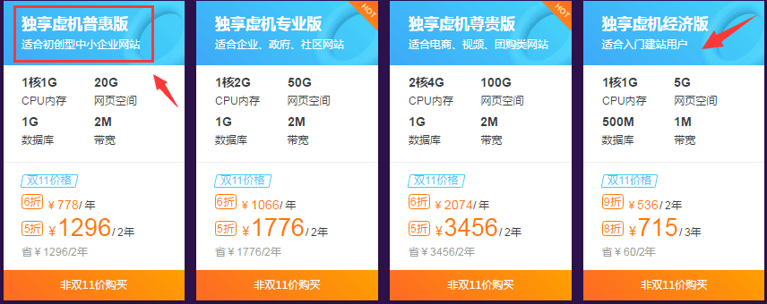3、独享云虚拟主机 。特点独立IP,不限流量,只为建站而生!出国内机房之外还有香港、新加坡、美国机房可以选择。不喜欢稳定,喜欢使用虚拟主机的注意了,错过了再等一年。建站推荐选购普惠版,建议直接选购两年。