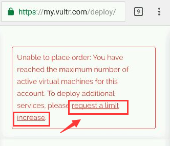 于是乎很多朋友想多开通几个VPS,争取一个月内把20美金用完。但问题也来了,目前Vultr限制每个账户只能购买两台512M内存的VPS,这个是无法修改的。另外Vultr还限制了每个账户只能开通5台VPS,这个目前是有办法可以解决的,解决方法也很简单。