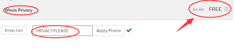 2、使用免费购买Whois隐私保护优惠码:PRIVACYPLEASE,即可免费购买。