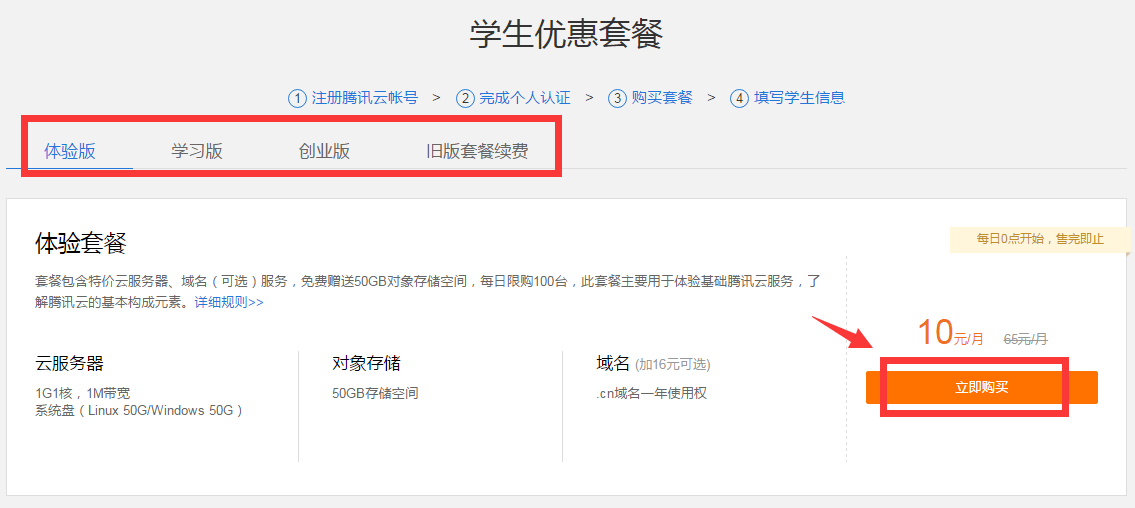 3、然后选购学生套餐,无需学生认证即可成功购买。