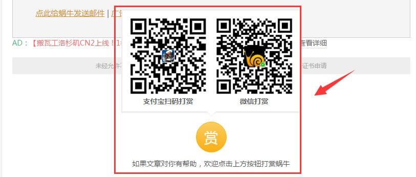 下面是站长添加成功后的演示效果。如果代码都填写正确后,打赏功能显示错位,请清理下浏览器缓存,站长亲测是没有什么问题的。