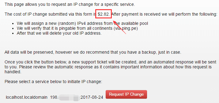 目前高品质美国CN2更换IP价格已经调整为2.82美元/次。相对原来的8美元/次要便宜很多了。 有网友反映又长成6.81美元了。