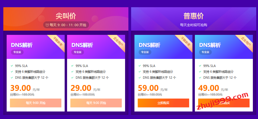 - 腾讯云DNS解析专业版促销活动地址:点击直达