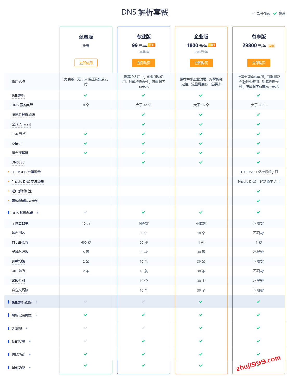 二、腾讯云DNS解析专业版和免费版及其他版本的区别