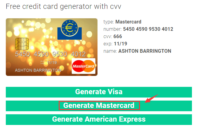 3、没有虚拟信用卡的,可以试试在线虚拟信用生成器。站长亲测使用在线生成器生成的Mastercard信用卡号完成了绑定。点击这里进入在线虚拟信用生成器页面。