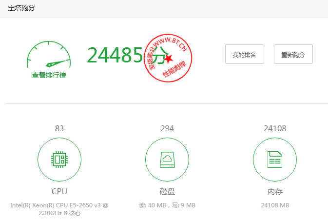 -------------------------------------------------------------------------- CPU 型号 : Intel(R) Xeon(R) CPU E5-2650 v3 @ 2.30GHz CPU 核心数 : 8 CPU 频率 : 2294.702 MHz 总硬盘大小 : 196.1 GB (24.0 GB Used) 总内存大小 : 24108 MB (906 MB Used) SWAP大小 : 0 MB (0 MB Used) 开机时长 : 0 days, 16 hour 52 min 系统负载 : 0.33, 0.39, 0.30 系统 : CentOS 7.1.1503 架构 : x86_64 (64 Bit) 内核 : 4.14.19-coreos 虚拟化平台 : kvm -------------------------------------------------------------------------- 硬盘I/O (第一次测试) : 6.5 MB/s 硬盘I/O (第二次测试) : 6.7 MB/s 硬盘I/O (第三次测试) : 6.5 MB/s -------------------------------------------------------------------------- 节点名称 IP地址 下载速度 延迟 CacheFly 205.234.175.175 7.14MB/s 1.605 ms Linode, Tokyo, JP 106.187.96.148 7.31MB/s 1.792 ms Linode, Singapore, SG 139.162.23.4 6.73MB/s 69.812 ms Linode, London, UK 176.58.107.39 3.18MB/s 224.100 ms Linode, Frankfurt, DE 139.162.130.8 1.77MB/s 298.996 ms Linode, Fremont, CA 50.116.14.9 2.16MB/s 113.835 ms Softlayer, Dallas, TX 173.192.68.18 2.75MB/s 136.826 ms Softlayer, Seattle, WA 67.228.112.250 4.86MB/s 113.913 ms Softlayer, Frankfurt, DE 159.122.69.4 2.55MB/s 232.511 ms Softlayer, Singapore, SG 119.81.28.170 2.62MB/s 67.121 ms Softlayer, HongKong, CN 119.81.130.170 3.86MB/s 52.473 ms -------------------------------------------------------------------------- 节点名称 上传速度 下载速度 延迟 上海电信 50.28 Mbit/s 104.684 ms 成都电信 15.58 Mbit/s 342.674 ms 西安电信 61.42 Mbit/s 108.256 ms 上海联通 25.46 Mbit/s 81.359 ms 重庆联通 39.16 Mbit/s 78.688 ms 西安移动 52.13 Mbit/s 54.813 ms -------------------------------------------------------------------------- 合肥 : 41.44 ms 北京 : 84.62 ms 武汉 : 54.76 ms 昌吉 : 215.06 ms 成都 : 129.33 ms 上海 : 105.32 ms 太原 : 54.13 ms 杭州 : 134.92 ms 宁夏 : 64.72 ms 呼和浩特 : Fail 南昌 : 47.83 ms 拉萨 : 105.71 ms 乌鲁木齐 : 102.25 ms 天津 : 51.05 ms 襄阳 : 153.83 ms 郑州 : 54.11 ms 沈阳 : 70.09 ms 兰州 : 67.89 ms 哈尔滨 : 75.29 ms 宁波 : 86.83 ms 苏州 : 135.38 ms 济南 : 47.41 ms 西安 : 56.6 ms 西宁 : 73.87 ms 重庆 : Fail 深圳 : 116.07 ms 南京 : 106.31 ms 长沙 : 63.01 ms 长春 : 70.07 ms 福州 : 56.21 ms --------------------------------------------------------------------------