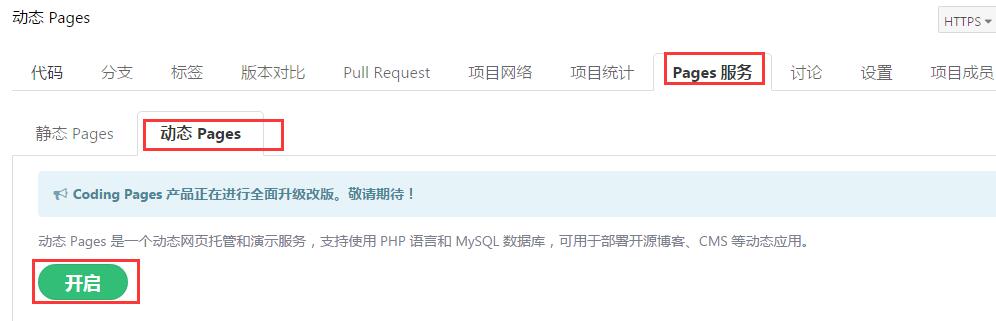 3、fork WordPress项目后,我们开启动态Pages服务。方法很简单,请看下图。