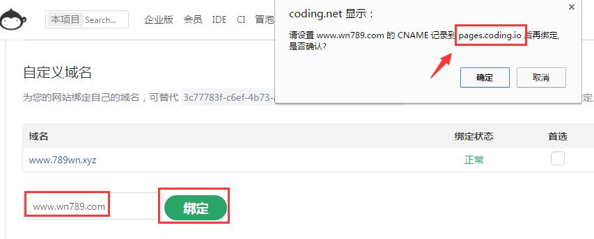 https://3c77783f-c6ef-4b73-a0b0-4d5139bc360f.Coding.io(官方免费域名)