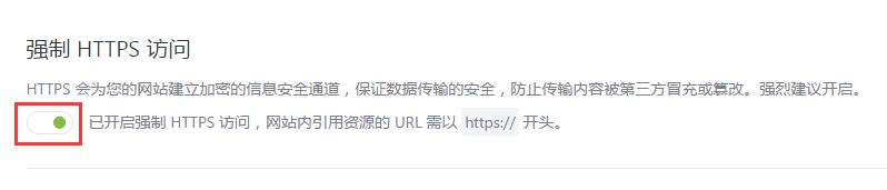 6、强制 HTTPS 访问就更简单了,直接点击开启即可查看到效果。