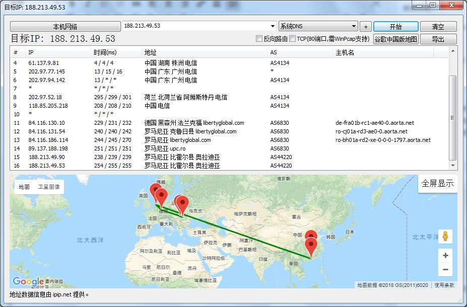 | 联通线路 | 13 | 天津联通 256.3 毫秒 | 辽宁沈阳铁通 372.0 毫秒 | 299.5 毫秒 |