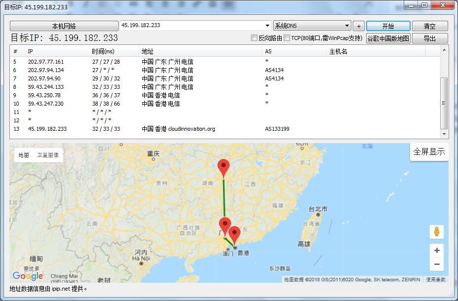 | 联通线路 | 11 | 广东深圳天威视讯(联通) 24.6 毫秒 | 内蒙古呼和浩特联通 71.5 毫秒 | 48.1 毫秒 |