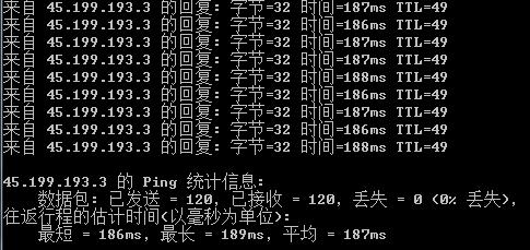 4、丢包测试。站长使用的是湖南电信网络,120次ping,0丢包。
