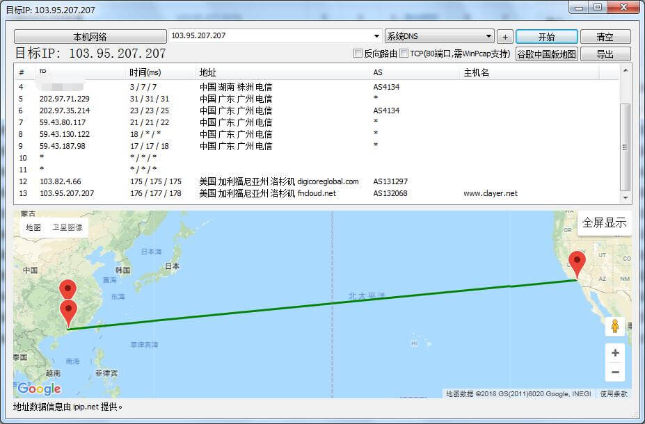| 16 | 103.95.207.207 | 103.95.207.207 | 美国加利福尼亚州洛杉矶 fncloud.net | AS132068 | 167.8 / 167.9 / 167.7 |