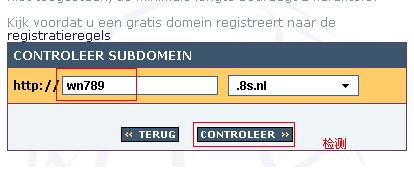 1、打开申请页面,填写你要注册域名,并选择号你喜欢的后缀,然后点击“CONTROLEER”检测是否可以使用。