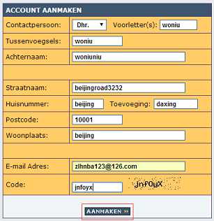 3、按下图填写注册信息。需要注意的是验证码,我在填写的时候出错多次。验证码最好按大小写输入。