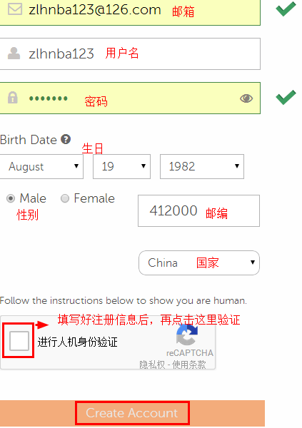 1、打开注册地址,填写相应注册信息,开始注册。你过你注册过程种,不显示国家级机器人验证项,建议你使用国外IP注册。填写好注册信息后,我们点击“进行人机身份验证”前的方框。