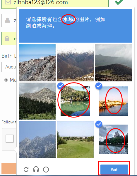 2、点击“进行人机身份验证”后会弹出如下图验证。我们按照提示选择相关图片,然后点击验证。