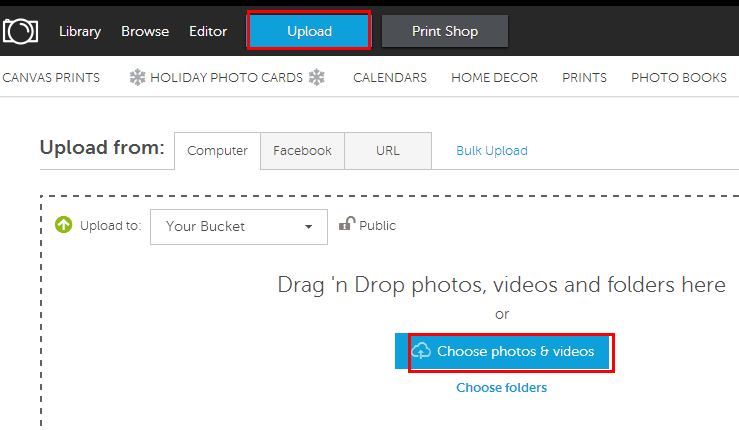 4、注册成功后,我们登录,点击“Upload”进入到上传页面,然后在点击“Choose photos videso”上传本地图片或*。
