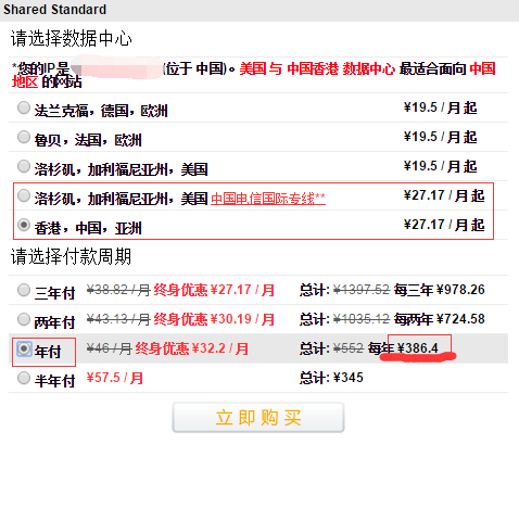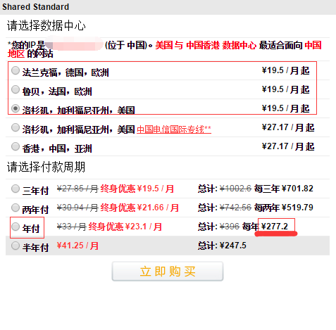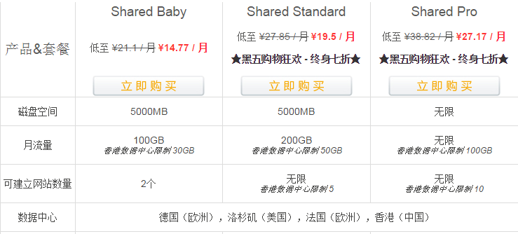 Shared Standard套餐价格:原价欧美主机线路年付396元每年,电信专线和香港主机年付552元每年。黑色星期五活动,永久年付7折,欧美线路最低只需277元每年,电信专线和香港主机年付只需386元每年。
