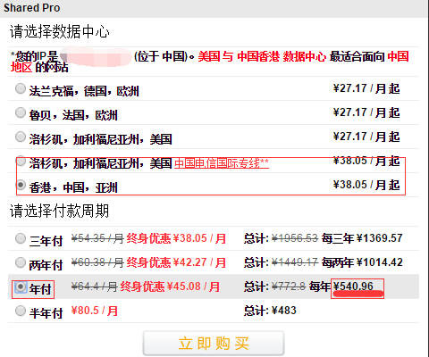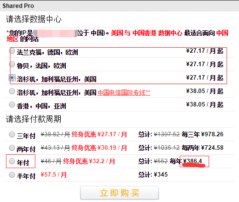 Shared Pro套餐价格:原价欧美主机线路年付552元每年,电信专线和香港主机年付772元每年。黑色星期五活动,永久年付7折,欧美线路最低只需386元每年,电信专线和香港主机年付只需540元每年。
