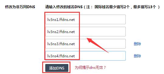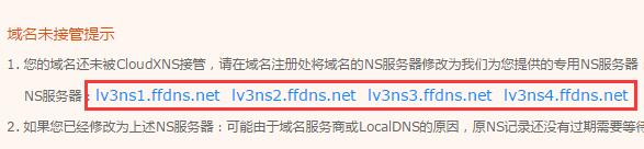 3、到域名管理面板更改NS服务器地址为CloudXNS提供的地址