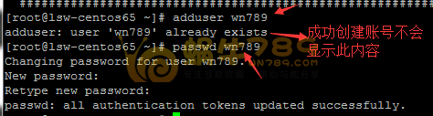 2、设置创建用的密码。下图中站长创账号后出现一段命令是提示w“zhuji999”账号已经存在,如果成功创建不会显示此段内容。