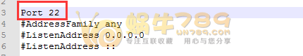 3、有的朋友完成上一步把“sshd_config”文件的“#PermitRootLogin yes”改成“PermitRootLogin no”就以为可以了。这样你会发现重启ssh服务后,22端口无法使用,无法通过SSH的22端口进行连接。那么如何解决修改/etc/ssh/sshd_config配置文件里中 #PermitRootLogin yes 改成“PermitRootLogin no”后重启ssh服务,无法启用22端口链接的错误?我们同样只需修改/etc/ssh/sshd_config配置文件,把“#Port 22”改成“Port 22”即可。
