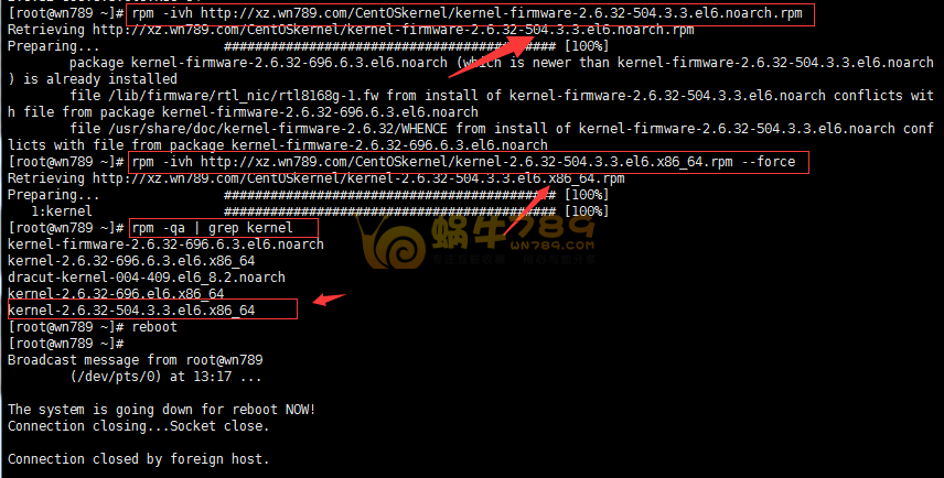 uname -r #查看当前内核版本 rpm -ivh http://xz.zhuji999.com/CentOSkernel/kernel-firmware-2.6.32-504.3.3.el6.noarch.rpm rpm -ivh http://xz.zhuji999.com/CentOSkernel/kernel-2.6.32-504.3.3.el6.x86_64.rpm --force