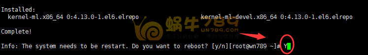 3、显示如下图表示安装成功,我们输入“y”重启VPS即可。如果不能自动重启VPS,就在Vultr管理页面对VPS进行重启。