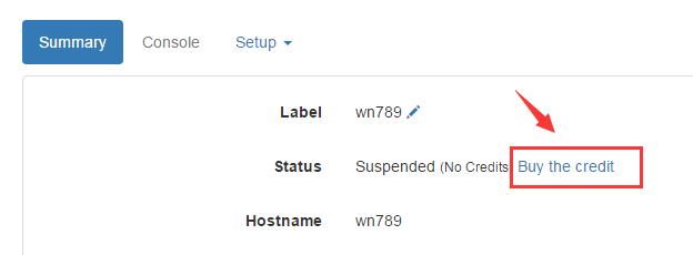 1、点击上面的购买地址进入Somagu官网,然后根据自己需要选择配置并创建VPS,创建VPS后,在如下图位置点击“Buy the credit”进行付款。