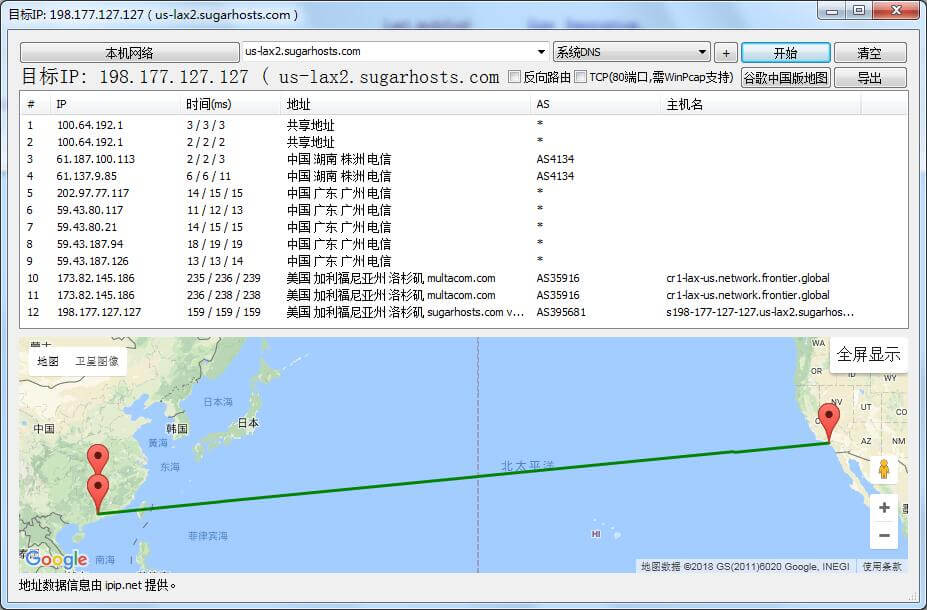 那么有朋友会问,Sugarhosts糖果主机洛杉矶中美极速专线到底好不好,Sugarhosts糖果主机洛杉矶中美极速专线速度到底咋样?下面站长将对Sugarhosts糖果主机洛杉矶中美极速专线做一个简单的速度评测,使用的是官方提供的测试IP,希望对大家的选择能有所帮助。