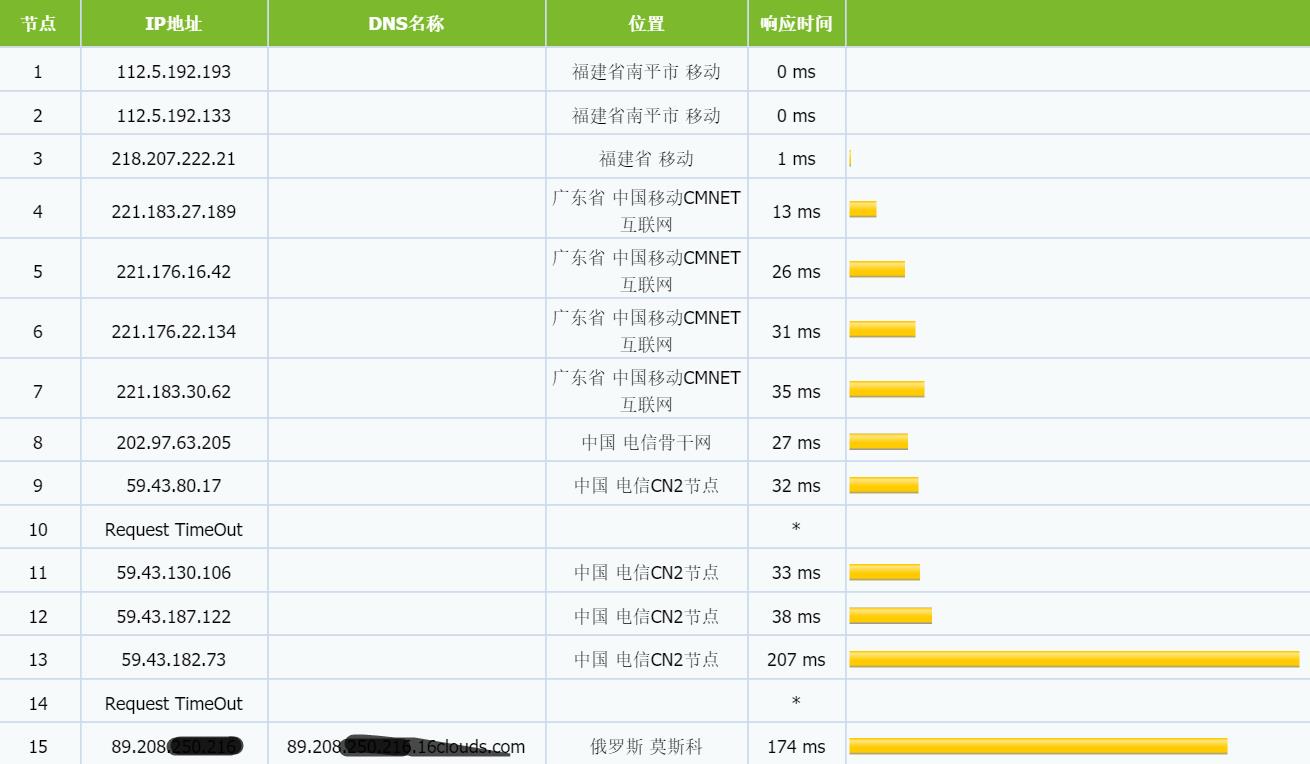 | 华南地区 | 11 | 广东广州BGP(互联港湾) 152.1 毫秒 | 广西南宁电信 202.8 毫秒 | 161.0 毫秒 |