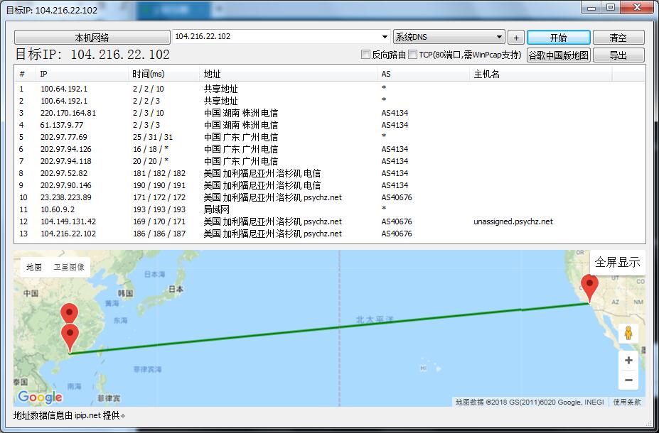 标准互联贵州电信路由追踪