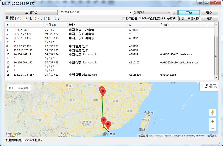 | 联通线路 | 11 | 广东深圳天威视讯(联通) 22.5 毫秒 | 辽宁沈阳铁通 75.9 毫秒 | 46.6 毫秒 |