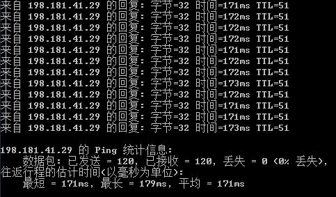 ------------------------------------------- 【四川 电信】 - 125.64.38.178 20 packets transmitted, 20 received, 0% packet loss, time 19021ms rtt min/avg/max/mdev = 184.739/185.023/187.436/0.780 ms ------------------------------------------- 【北京 电信】 - 106.120.243.142 20 packets transmitted, 20 received, 0% packet loss, time 19003ms rtt min/avg/max/mdev = 151.029/151.150/151.381/0.290 ms ------------------------------------------- 【北京 联通】 - 103.254.70.52 20 packets transmitted, 20 received, 0% packet loss, time 19022ms rtt min/avg/max/mdev = 156.689/192.691/227.243/23.283 ms ------------------------------------------- 【北京 移动】 - 218.205.152.14 20 packets transmitted, 19 received, 5% packet loss, time 19063ms rtt min/avg/max/mdev = 174.941/175.460/175.844/0.384 ms ------------------------------------------- 【上海 移动】 - 117.131.14.202 20 packets transmitted, 15 received, 25% packet loss, time 19123ms rtt min/avg/max/mdev = 154.021/157.855/164.398/2.974 ms ------------------------------------------- 【上海 电信】 - 211.144.205.58 20 packets transmitted, 9 received, 55% packet loss, time 19272ms rtt min/avg/max/mdev = 202.531/205.476/209.776/2.907 ms ------------------------------------------- 【上海 联通】 - 220.196.42.133 20 packets transmitted, 20 received, 0% packet loss, time 19026ms rtt min/avg/max/mdev = 179.103/184.937/197.051/5.901 ms ------------------------------------------- 【广东 电信】 - 121.11.69.135 20 packets transmitted, 0 received, 100% packet loss, time 19475ms ------------------------------------------- 【广东 联通】 - 27.40.0.30 20 packets transmitted, 20 received, 0% packet loss, time 19004ms rtt min/avg/max/mdev = 203.895/207.700/214.031/3.233 ms ------------------------------------------- 【广东 移动】 - 211.139.129.222 20 packets transmitted, 13 received, 35% packet loss, time 19228ms rtt min/avg/max/mdev = 162.443/163.884/165.619/1.022 ms ------------------------------------------- min:最低延迟 avg:平均延迟 max:最高延迟 mdev:平均偏差 -------------------------------------------