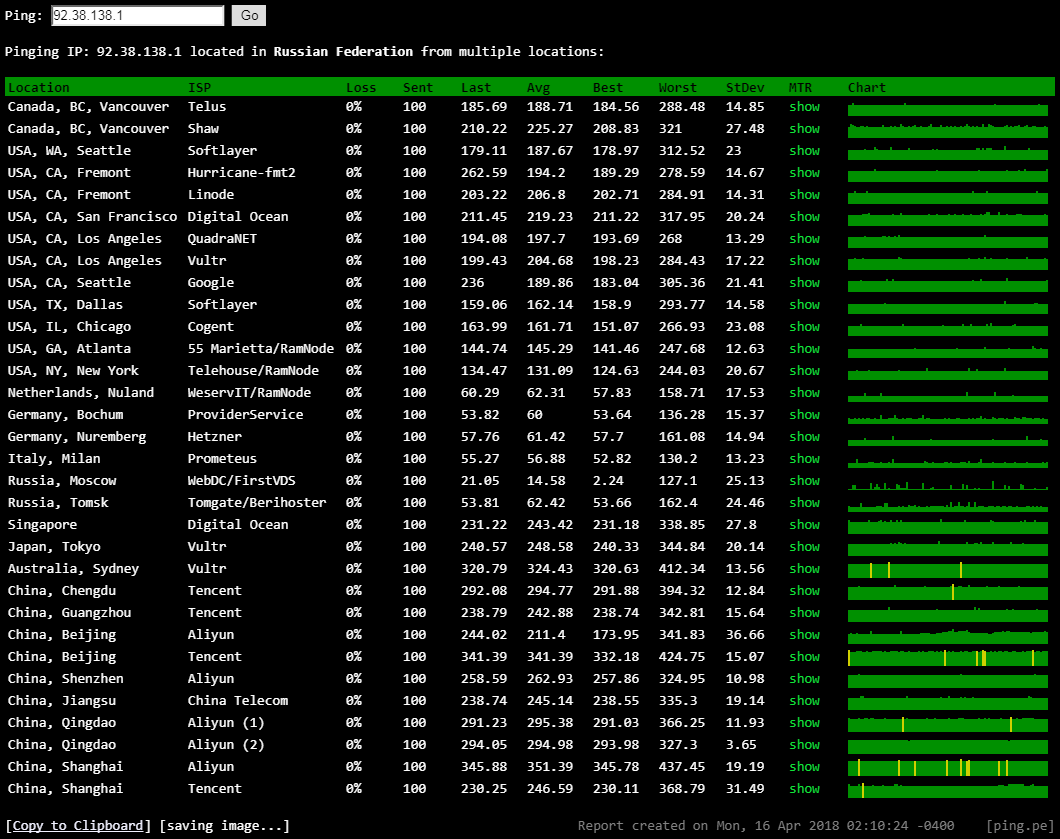 | 全部 | 74 | 北京(移动) 191.5 毫秒 | 广东中山电信 447.9 毫秒 | 281.7 毫秒 |