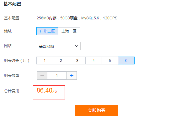 腾讯云是腾讯集团旗下产品,是国内数一数二的云服务商家。总体来说腾讯云还是良心商家,发布的活动也比较给力,目前正在进行的云服务器促销活动也是国内主流云服务商家的风向标级活动,如腾讯云学生机1核2G1M带宽360元/3年 附新老用户有效通过学生认证方法、腾讯云服务器二折 1核1G内存794元/3年 2核2G内存1313元/3年,仅国内数据中心可以选择,有正规建站需求的,腾讯云是不错的选择。今年4月腾讯云发布了MySQL数据库入门机型促销活动,256MB内存、50GB硬盘,12元/月,首次购买6个月只需42元左右。另外其实腾讯云MySQL数据库入门机型一直有一次性购买三年只需86元的促销活动,目前活动入口,官网已经找不到了,但是我们可以通过简单的修改还是可以以86元/3年的价格购买。