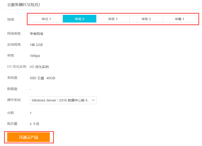 2、点击上图中的使用,即可根据自己需要选择云服务器节点,有华北、华东、华南等节点可以选择,系统也可以选择Windows。