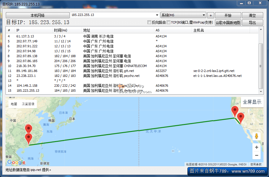 | 8 | 219.158.98.154 | 219.158.98.154 | 美国加利福尼亚州洛杉矶 联通 | AS4837 | 250.7 / 252.2 / 253.6 |