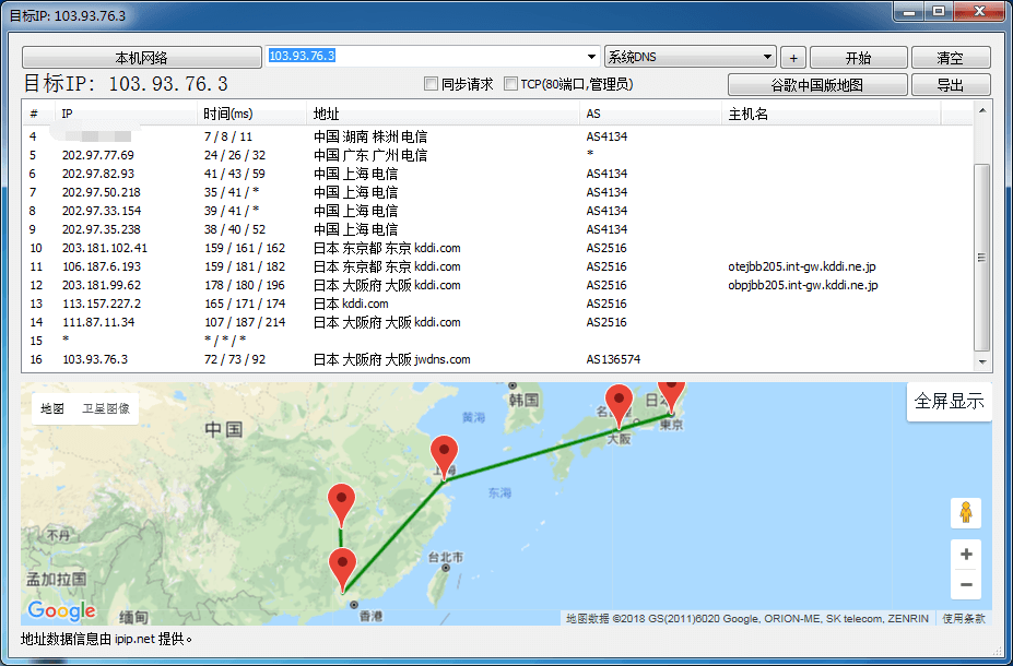 | 15 | 103.93.76.3 | 103.93.76.3 | 日本大阪府大阪 jwdns.com | AS136574 | 50.2 / 51.5 / 51.9 |
