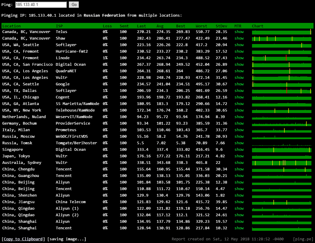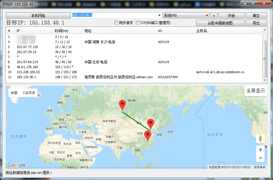 | 15 | 185.133.40.1 | 185.133.40.1 | 俄罗斯新西伯利亚州新西伯利亚 adman.com | AS4 / AS57494 | 134.9 / 135 / 134.8 |