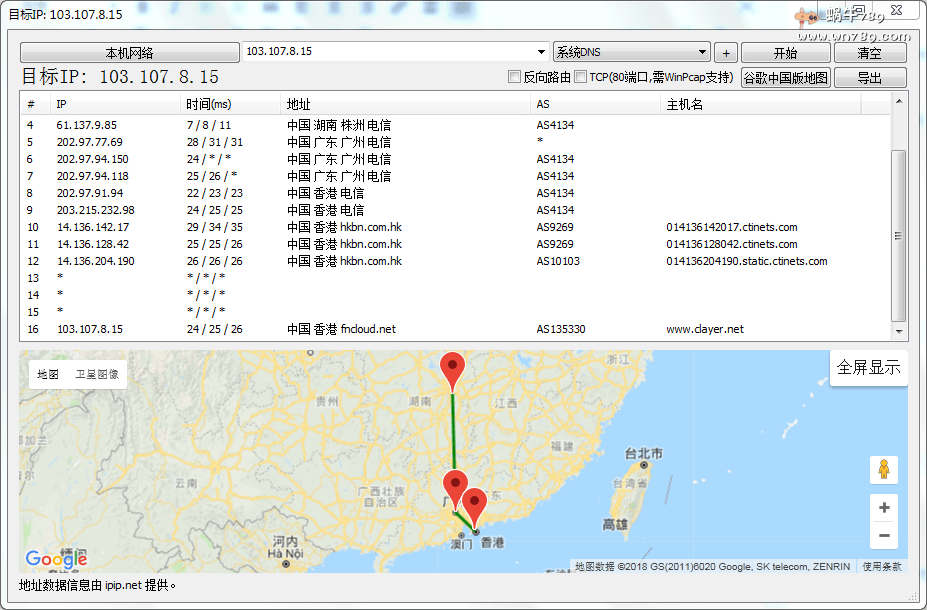 湖南电信路由追踪结果