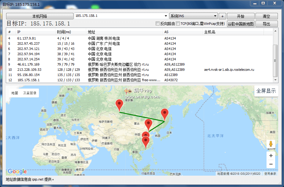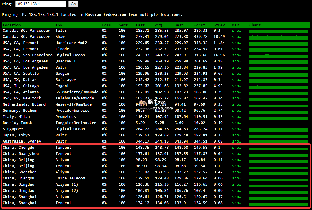 | 11 | 185.175.158.1 | 185.175.158.1 | 俄罗斯新西伯利亚州新西伯利亚 free-www.ru clx.ru | AS43072 | 130.8 / 134.6 / 130.8 |