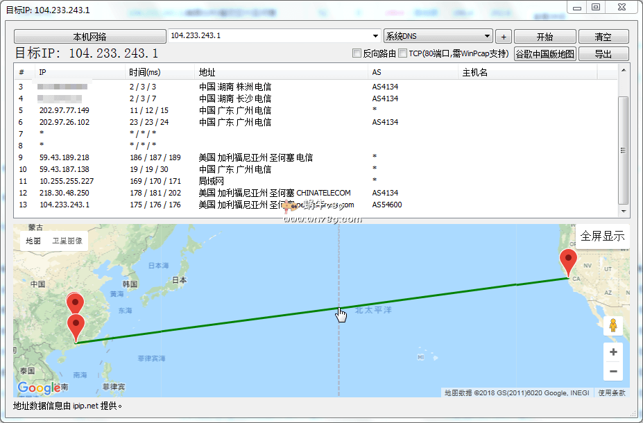 湖南电信路由追踪