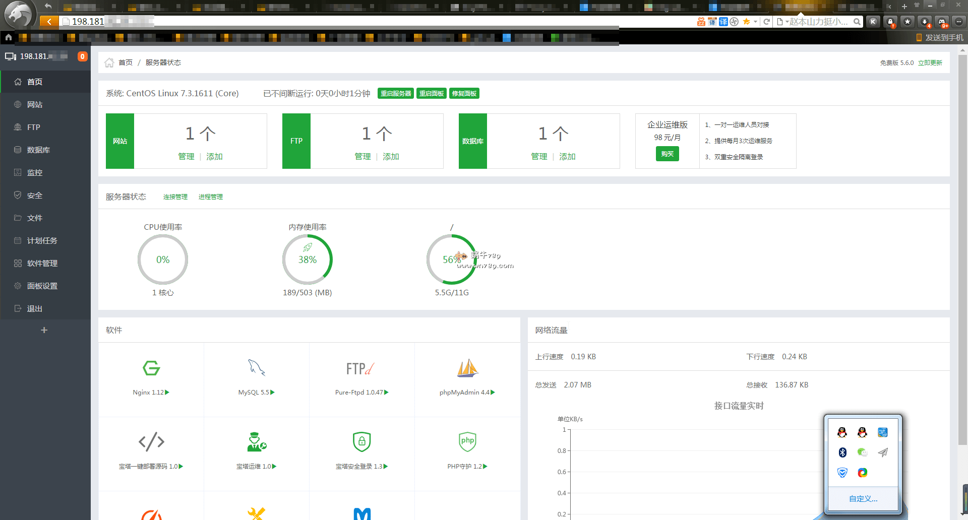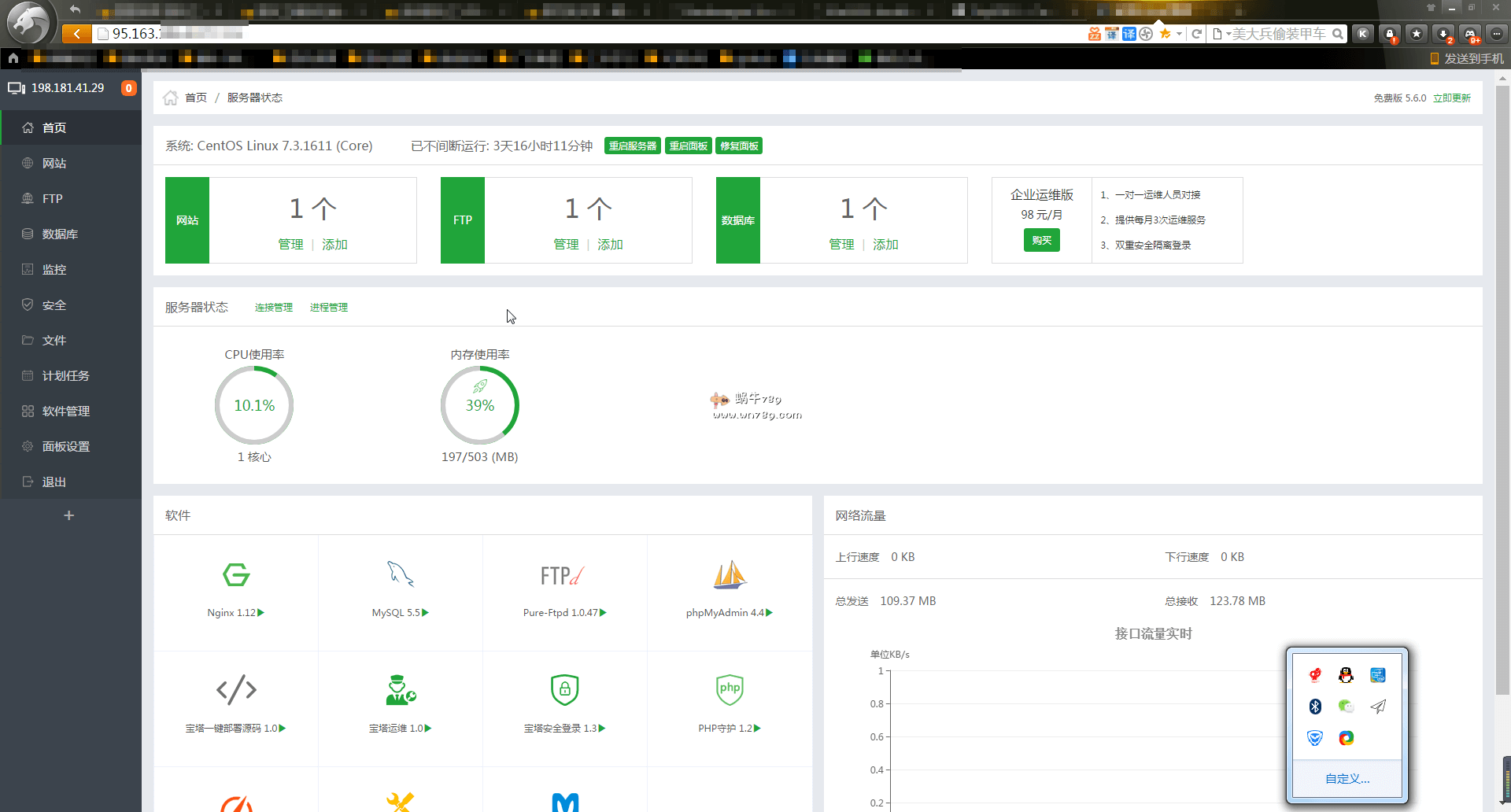3、在机房切换强,站长收的面板是已经按照了宝塔Linux面板。