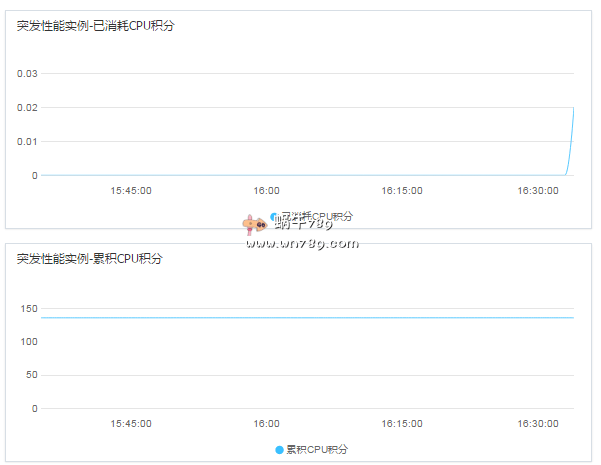 前段时间站长在#吐槽#阿里云年中云聚惠 1核1G内存/1Mbps带宽/366元/年一文中提到过阿里云长期有效的全民云计算已经取消了,其实当时查看阿里云全民云计算活动是页面确实已经无法打开,今天在给自己的一台阿里云云服务器续费时发现阿里云全民云计算活动还在,只是ECS云服务器调整为t5突发性能型实例,什么是突发性能型实例?就是给云服务器设置了基准CPU计算性能,CPU超过基准计算性能需要消耗CPU积分,CPU积分而积分根据服务器运行情况自动获取,详情请点击这里查看阿里云官方介绍。下图是站长正在使用的突发性能型实例CPU消耗积分和累计统计积分统计图。