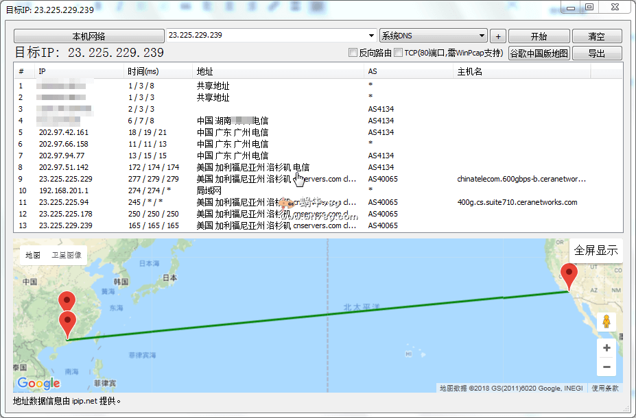 | 17 | 23.225.229.239 | 23.225.229.239 | 美国加利福尼亚州洛杉矶 cnservers.com cloudradium.com | AS40065 | 185.2 / 184.7 / 184.5 |