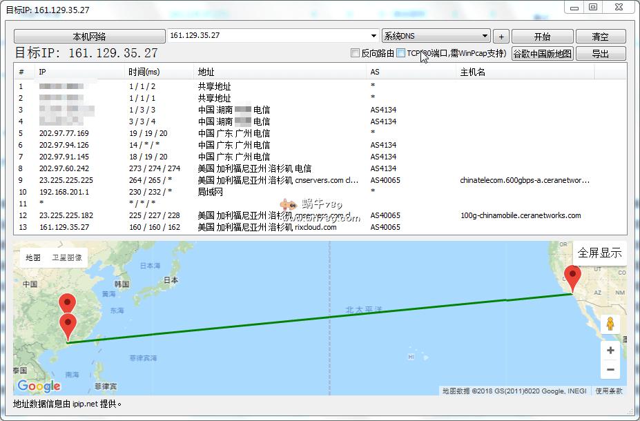 | 12 | 202.97.18.170 | 202.97.18.170 | 美国加利福尼亚州洛杉矶 电信 | AS4134 | 193.6 / 192 / 188.3 |